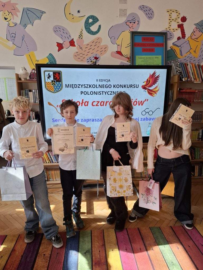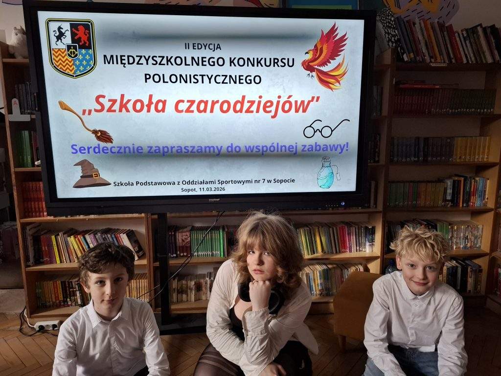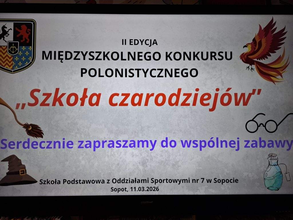 Gratulujemy zajęcia II m.w Sopocie w Konkursie Polonistycznym,,Szkoła Czarodziejów!!! Brawa dla drużyny Ariny Prokopchuk z 7a, Krzysia Badyńskiego z 4b, Mikołaja Pudlińskiego z 7a, Niny Sukow z 7a.